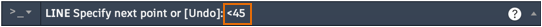 If you need to draw a line at a specified angle, you can lock the angle for the next point. For example, if the second point of a line needs to be created at a 45 degree angle, you would enter <45 in the Command window.