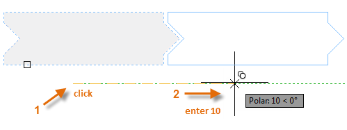 Next, you move your cursor to the right, relying on the polar tracking angle to keep the direction horizontal, and then enter 10 for the distance. Press Enter or the Spacebar a second time to end the command.
