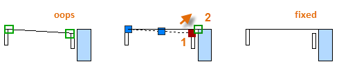 Grips are displayed when you select an object without starting a command. Grips are often handy for light editing. For example, the line below accidentally snapped to the wrong endpoint. You can select the misaligned line, click on a grip and then click to specify the correct location.