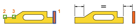 or enter S in the Command window) and select the objects with a crossing selection as shown below (1 and 2). The crossing selection is mandatory—only the geometry that is crossed by the crossing selection is stretched. Then click anywhere in the drawing area (3), move the cursor to the right, and enter 50 as the distance. This distance might represent millimeters or feet.