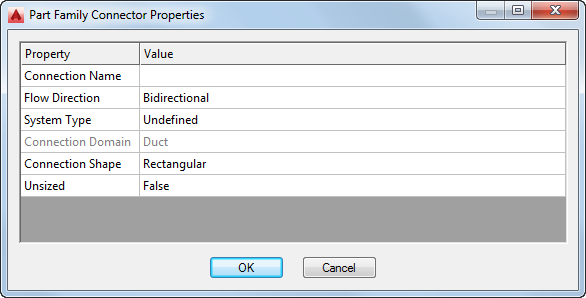| Unsized | select True or False. Selecting True allows the connector to be unsized and valid connections to be made with unsized segments. |