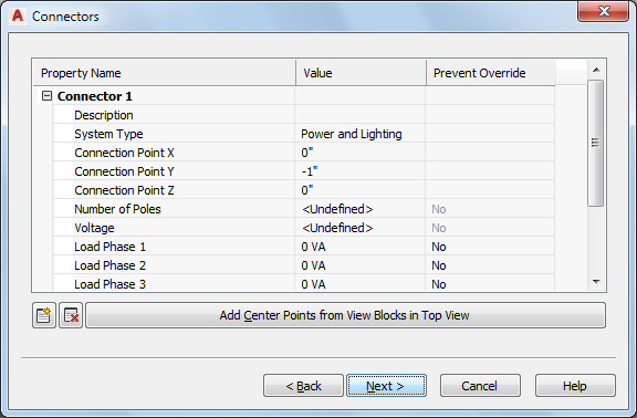 | specify a type of circuit for the connector | select a system type for System Type. Note: If you select Power and Lighting, you can configure additional connector properties, such as voltage and load.