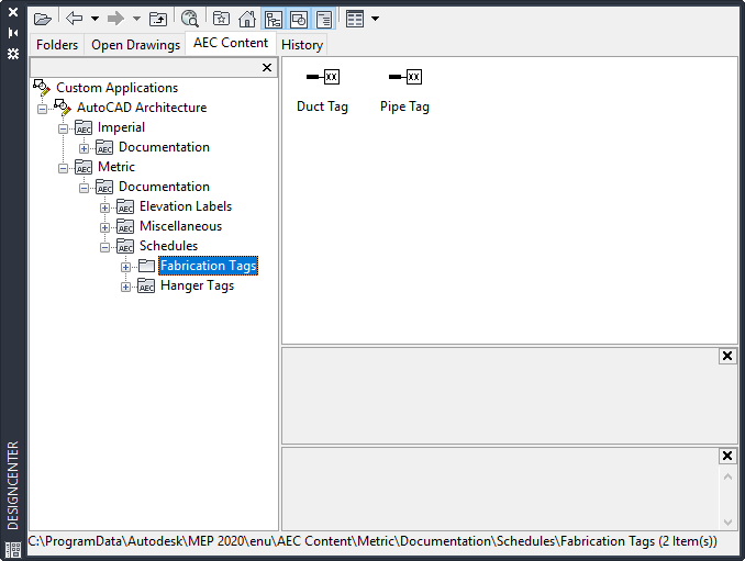 Tip: If you want to use a DesignCenter symbol repeatedly in a project, you can drag the symbol from DesignCenter directly onto a tool palette to create a symbol tool.
