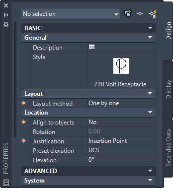 Tip: To facilitate annotation and scheduling, you can use the properties of device tools to specify property sets and tags, so they are automatically attached to devices when they are added to drawings. A property set is a user-defined group of related properties, such as a part number or a manufacturer’s name. A tag is a symbol that can display the data in a property set attached to an object. For more information on annotation and scheduling, see Creating Construction Documents.