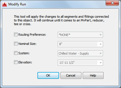 (routing preference, nominal size, system, and elevation), and then specify the change from the corresponding list.