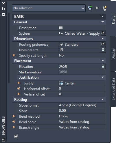 By default, Basic properties are displayed on the Pipe Properties palette.