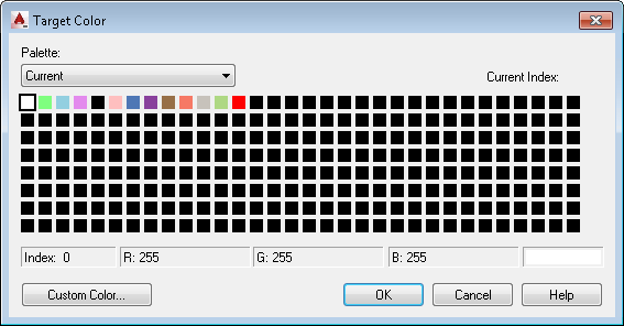 Click Select Color, then click one of the contour lines in the drawing. The brown color (index 8) is highlighted in the Palette Manager, showing numeric values. |