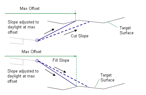 May be used to override the fixed Max Offset value and tie the maximum offset to an offset alignment. The following object types can be used as targets for specifying the offset: alignments, polylines, feature lines, or survey figures. |