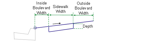 The inside grass strip, sidewalk, and outside grass boulevard links are inserted outward from the attachment point at the given slope. The grass strips can be omitted by specifying a zero-width.