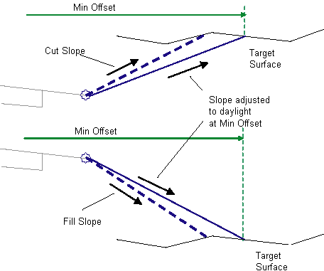 May be used to override the fixed Min Offset and tie the minimum offset to an offset alignment. The following object types can be used as targets for specifying the offset: alignments, polylines, feature lines, or survey figures. |