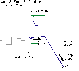 Width of the guardrail widening link for fill slopes using Steep Fill Slope. Use zero for no guardrail widening. |