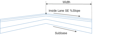 | Base % Slope | Specifies the slope of the base and subbase materials. In superelevation will be calculated as the difference between Default slope and base slope, then added to Superelevation value. | Numeric | -3.0 |