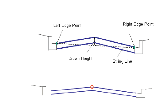 Bottom of overlay surface is computed by offsetting the proposed finish grade (Left Edge point to New Crown Point to Right Edge Point) by Overlay depth value.