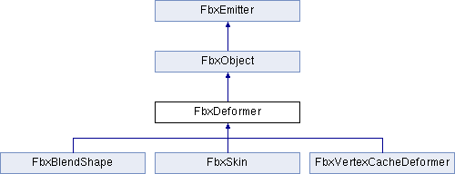 Base class for skin deformer (FbxSkin) and vertex cache deformer (FbxVertexCacheDeformer). More...
