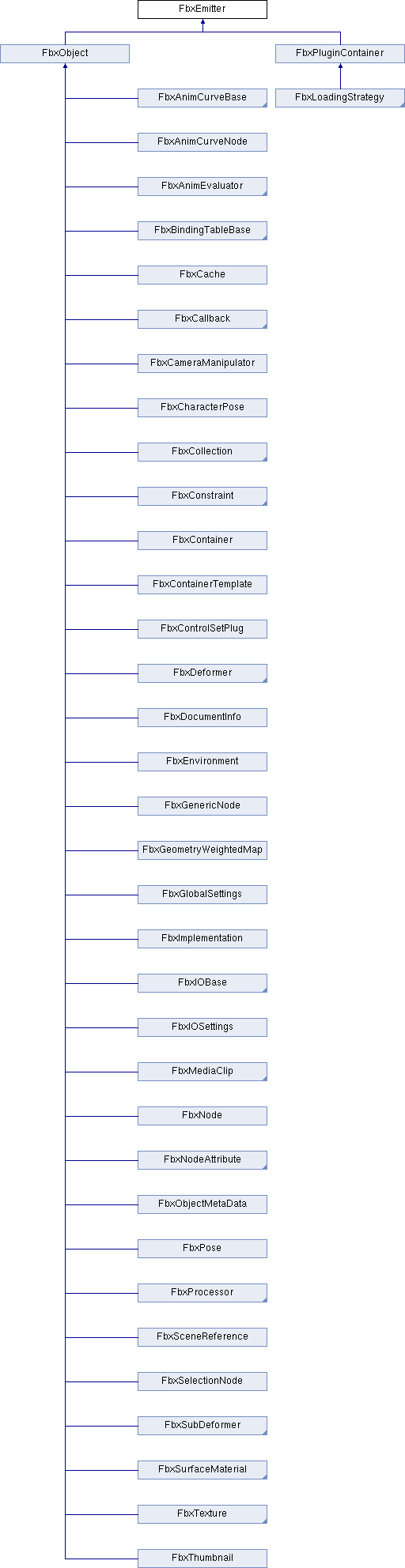 The event type could be a specific class which derived from FbxEvent. Please read FbxEmitter::Emit() for more details. Event emitter contains a list of event handlers. FBX object could be used as emitter, since FbxObject is derived from FbxEmitter. Before using emitter to emit an event, one or more event handlers must be added to the handlers list of current emitter. In other words, it's "bind event handlers to emitter". There are two ways to bind event handlers to emitter.