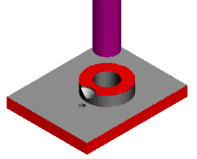 For example if you have 0.25, 0.375 and 0.5 inch holes, a 0.5 inch spotdrill is used for all holes. It is possible that you could get a gouge with this setting turned on, if a large spotdrill might gouge neighboring features. The following image shows a situation that would gouge: