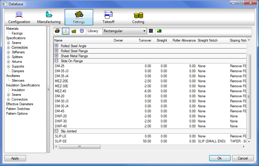 Adjust Long / Slide / Adjust Short / Drive : These values are added or subtracted from the length of the connectors flange material, when lengths are shown on reports.