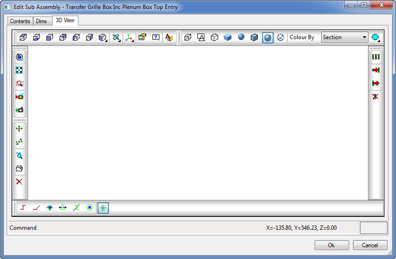 The 3D View tab provides a 3D viewing window environment for editing and visualizing the sub assembly. Most of the common 3D Viewer toolbar commands are available here.
