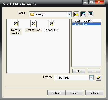 to add jobs to the window on the right side of this dialog. The jobs that are displayed in this window will be batched. The selected jobs are processed in accordance with the actions determined within the Process selected.