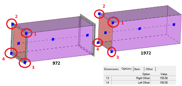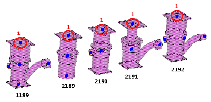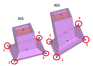 The following images show the locations of field points on the patterns (CIDs) that support field points. The field points are circled in red, and are numbered one (1) through four (4).