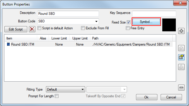 - Select the Symbol button, and browse to the location of the saved DXF, ITM file.