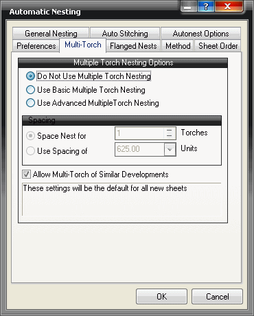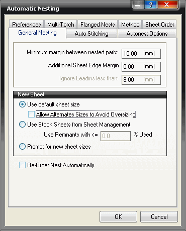 New Sheet: The New Sheet section of the General Nesting tab lets you choose the method in which sheets are allocated during automatic nesting.
