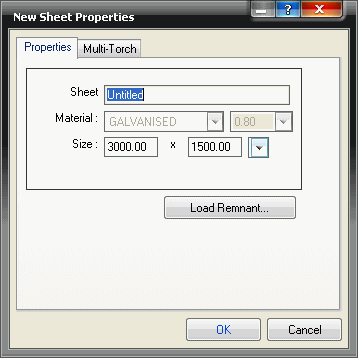 Load Remnant: Lets you select a saved remnant to nest the parts on. This is used only in conjunction with Sheet Management.