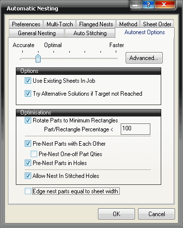 The options on this tab determine the methods used by the software to actually nest the parts.