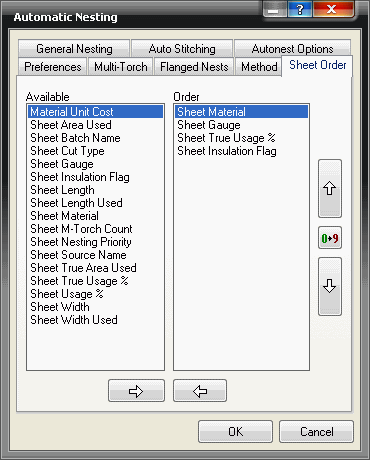 In the example shown above, the sheets will be sorted first by Material, then by Gauge, then bt True Usage and finally by Sheet Insulation Flag.