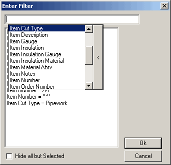 This previous example could be used to hide all items with CID 535 where the description is not Fire Damper Flanged. This type of filter is useful if multiple items have been constructed from the same template, and so share the same CID number.