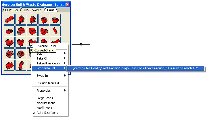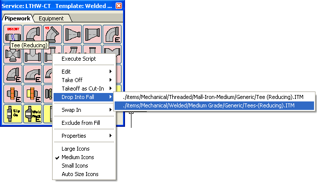 - Right click the Tee (Reducing) and select Drop into Fall (select the second item form the list).