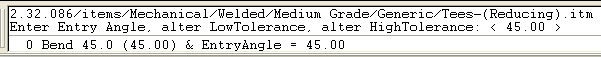 - The command line prompts: Enter Entry Angle, alter LowTolerance, alter HighTolerance: < 45.00 >.