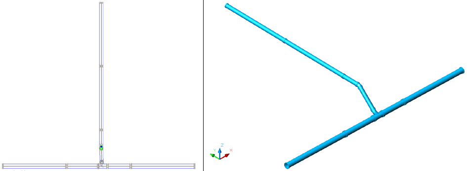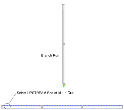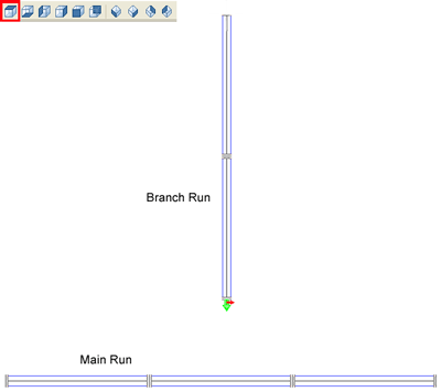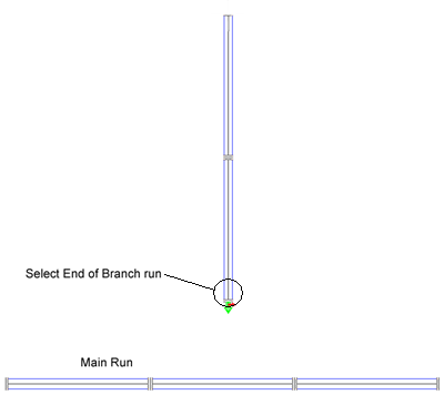 - Click OK. A section of Branch run should now have been added to the drawing. The following displays:
