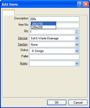 - Click the Cast Iron Pipe button to display the Add Items dialog.