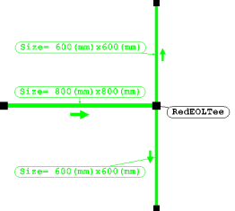 Line Fix By position is changed at the point of branch selection. This example shows a flat bottom main run with a central Fix By position for the circular branch. Elevation change of half the depth was required in order to position branch centrally.