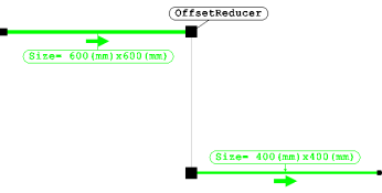 Line is set from the Fix By setting at takeoff leading to an Offset Reducer button code. This particular example shows a Flat left set duct transferring the full width to then become a flat right reducer. Value of movement must be entered prior to selecting new Fix By position.