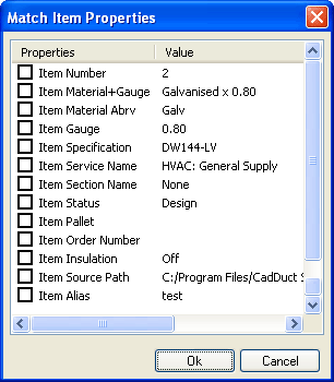 - Right click to display the Match Item Properties dialog. The dialog displays the properties of the source object that are available for copying to the destination object(s).