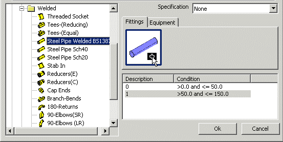 In the example below the single button now represents Mapress - Carbon Steel pipe with a condition range set <=50 and Steel Pipe Welded BS1387 with a condition range >50 and <=150.