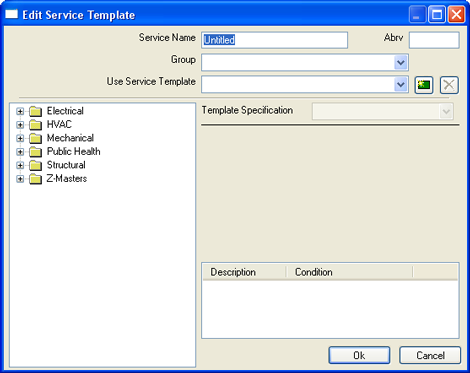 Templates define the Products and Conditions associated with drawing a particular Service. A pre-requisite is that the required products are originally available from the Item Folders. The default installation includes default services for use which can be configured to your requirements.