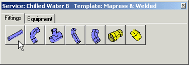 A single button can represent more than one product of a similar type. The products must have a different condition to each other. In the example shown above the initial product placed on the template is a Mapress - Carbon Steel pipe with a condition range set <=50.