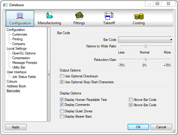 Barcodes, or select the Database icon from the Utility Bar. The Database dialog is displayed.