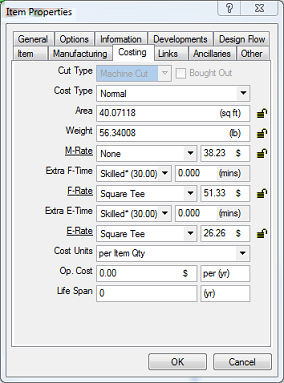 The Item Properties dialog shown below is for a bought out piece of equipment (round bend).