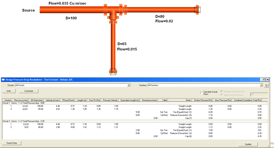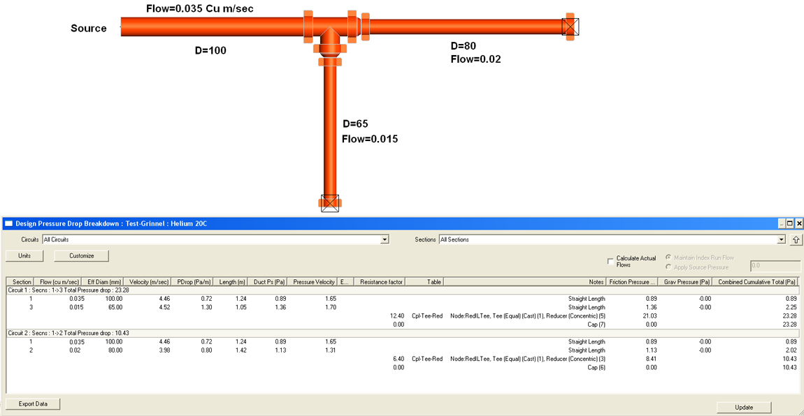 Multiple sheets are needed for Branches and Tees where the flow divides and different parameters apply to the Main and Branch runs.