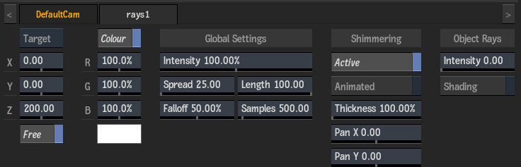 Displays the screen space position along the X axis of the Rays point-of-interest. Unavailable if Free is disabled. Editable.