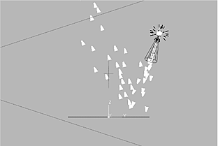 | Generator+ Extinct | Make particles disappear and create an additional particle stream when particles reach a parented surface. Only the Max Dist parameter works with this type of bounce unless the particles end in another particle stream. See Combining Particle Streams. |