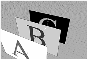 When Z-buffer is off, the distance of objects from the camera eye is not considered. Objects are drawn in the order shown in the Priority Editor. To follow the previous example, you can turn off Z-buffer and change the priority of Image B so that it is drawn on top of both Image A and Image C. The Z position of these images is therefore ignored.