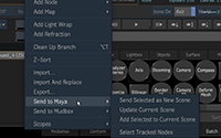 Send To... allows you to easily reach the specialized features of each application's toolset effortlessly. Send To... is ideal for texturing and sculpting geometry for integration into a video shot, or taking large 3d scenes and sending them to Flame for interactive rendering.