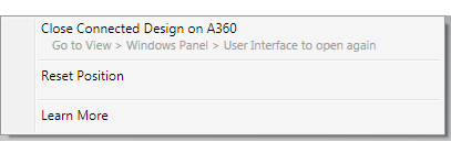 - New context menu options on the Connected Design entry button also make it easy to turn off Design Shares and get Help with using Inventor Connect.