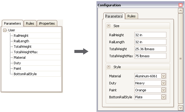 iLogic embeds rules as objects directly into part, assembly, and drawing documents. The rules determine and drive the design parameter and attribute values. By controlling these values, you can define the behavior of model attributes, features, and components.