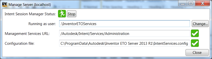 - Intent Session Manager Status Start and stop the Windows Server Session Manager Service. Run this service to make any server functionality available. The current status displays, and you can manually start or stop the service. This service displays as Intent Session Manager in the Windows Services list.